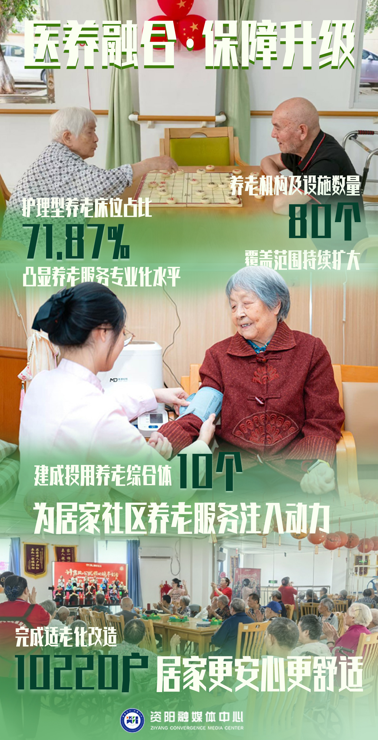 “十四五”以来,资阳市聚焦老年人医疗保障、精神文化、社会参与等多维度发力,推动养老服务体系不断完善,让老年人的获得感、幸福感、安全感持续提升。
