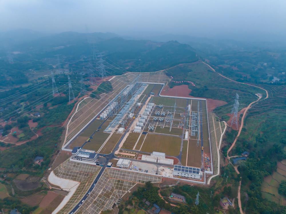 天府南1000千伏特高压变电站于2025年投运,新开工的攀西特高压交流工程将对天府南站进行扩建。(严晶铖 摄)