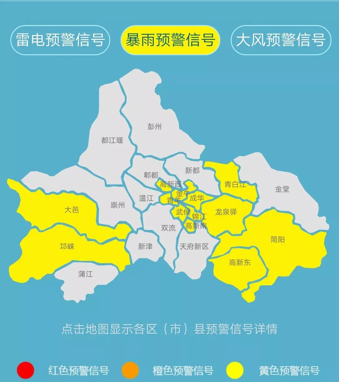 成都市气象台2018年7月14日21时00分发布第24号暴雨黄色预警信号如下: