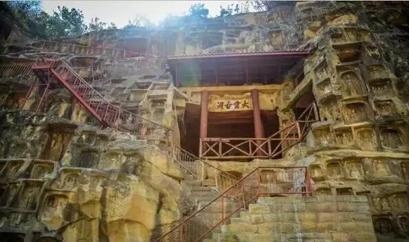 广元千佛崖是四川境内规模最大的石窟群,位于广元城北5公里的嘉陵江东岸。摩崖造像始于北魏时期,历经了近1500年,在高45米、南北长200多米的峭壁上,布满了造像龛窟,重重叠叠13层,密如蜂房。据清咸丰四年(1854年)碑文记载,全崖造像达“一万七千有奇”。只是在1935年修筑川陕公路时,有一半以上的造像被毁,现存1192龛,7000余尊造像。千佛崖临江而建,颇为壮观,川陕路从其下方通过,形成了江、路、山、佛的有机统一。