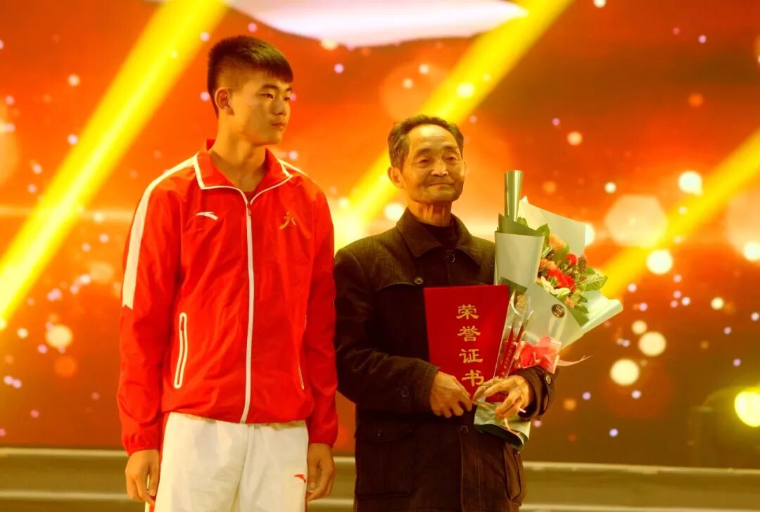 姐姐代表远在北京备赛的董顺江上台领奖