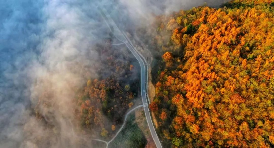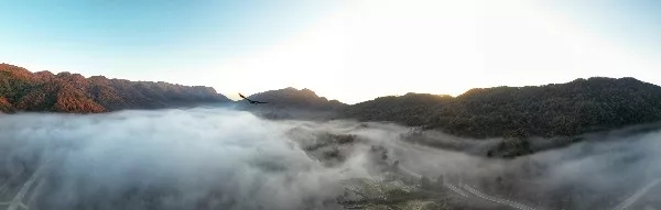 隐于云雾中的村落和道路,若隐若现,那些奇幻故事里的“世外桃源”不正就是这个样子的吗?