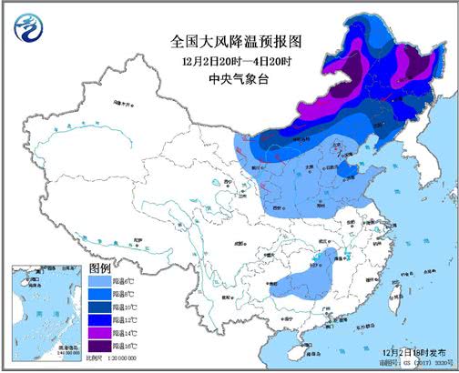 中央气象台12月2日18时发布大风降温预报