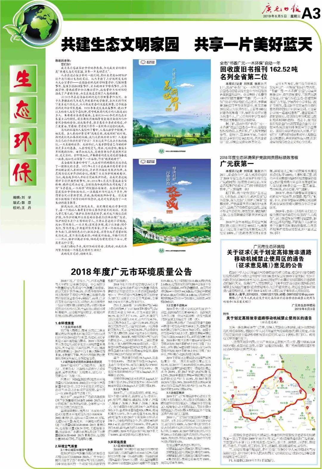 今年6月5日是第48个世界环境日,广元市围绕环境日主题“美丽中国-我是行动者”,以加快推进我市生态文明建设,推动全市上下积极参与生态文明建设和生态环境保护为重点,开展丰富多彩的系列宣传活动,全力营造好“人人关心环境保护、人人参与生态文明建设”的良好社会氛围。