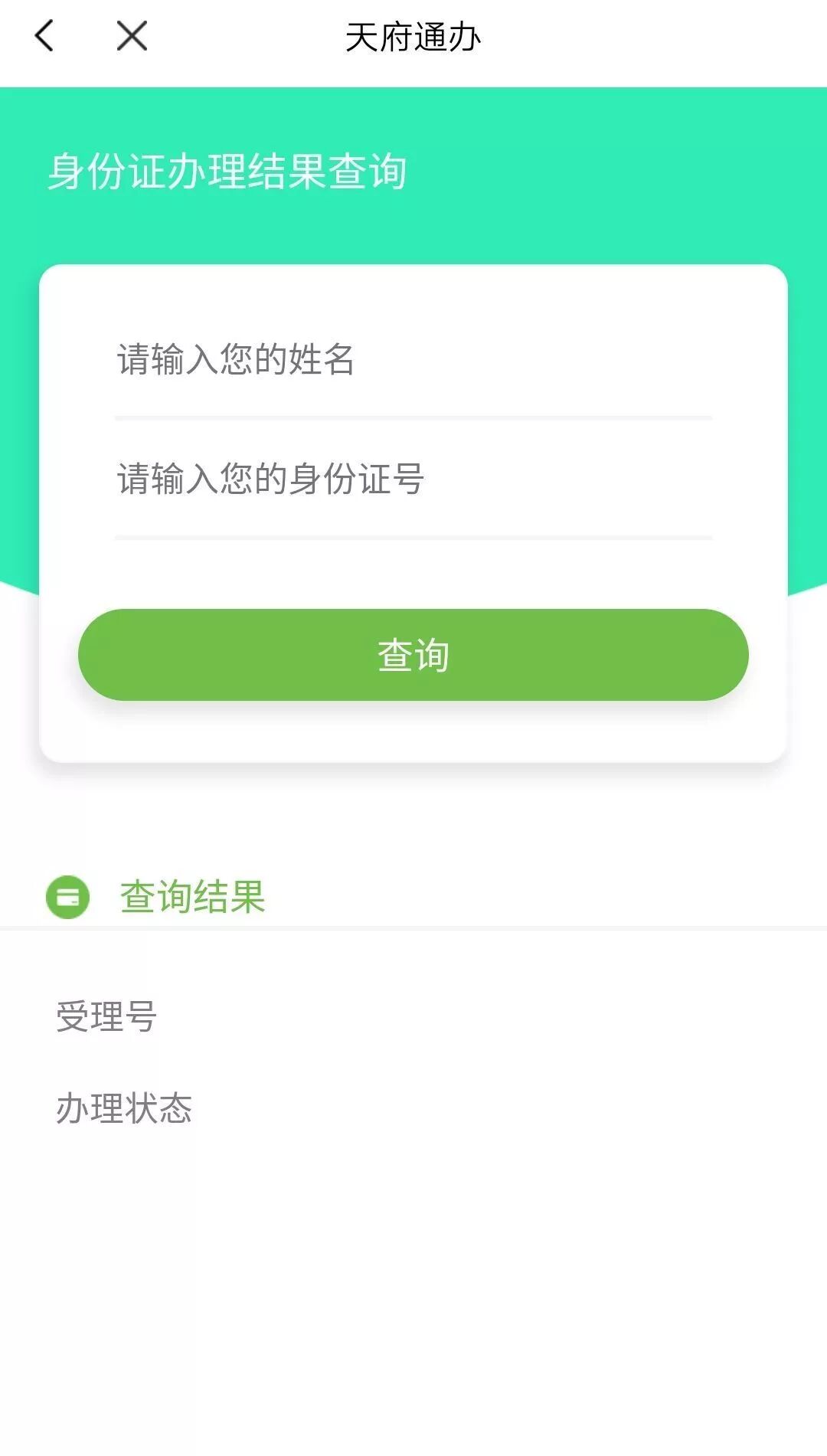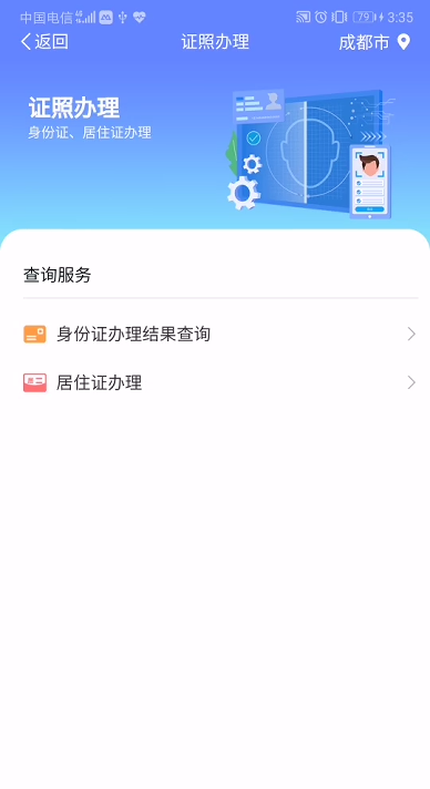 在证照办理专区,您可以查询身份证办理情况。
