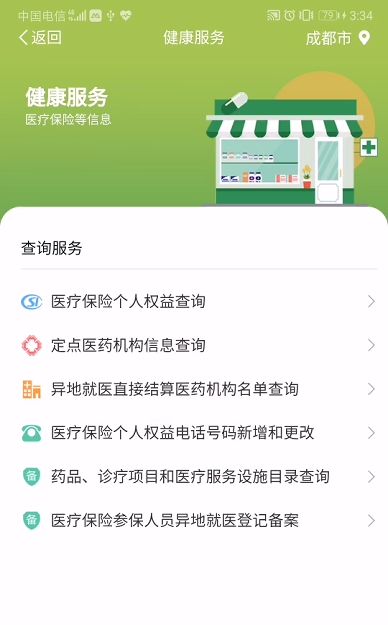 在健康服务专区,您可新增或更改医保个人权益电话,完成医保参保人员异地就医备案,查询定点医疗机构信息、医保个人权益、药品目录……