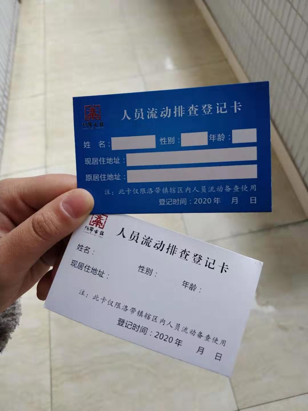 本着疫情防控排查“不漏不重一车一户一人”的原则,针对本辖区常住人口、新增外来人口以及进入本辖区的车辆,结合各个点位人员车辆信息登记表,创新制作外来车辆排查登记卡(蓝色)、人员流动排查登记卡(白色、蓝色),统筹设置在场镇各个小区、院落等群众居住区以及进出场镇的主要通道卡口,详细记录人员车辆的基本信息,由物管或卡口负责人统一登记发放,以便于小区、院落的居民以及车辆进出备查使用,强化了返工人员和车辆的管控,提高了疫情防控排查工作效率。