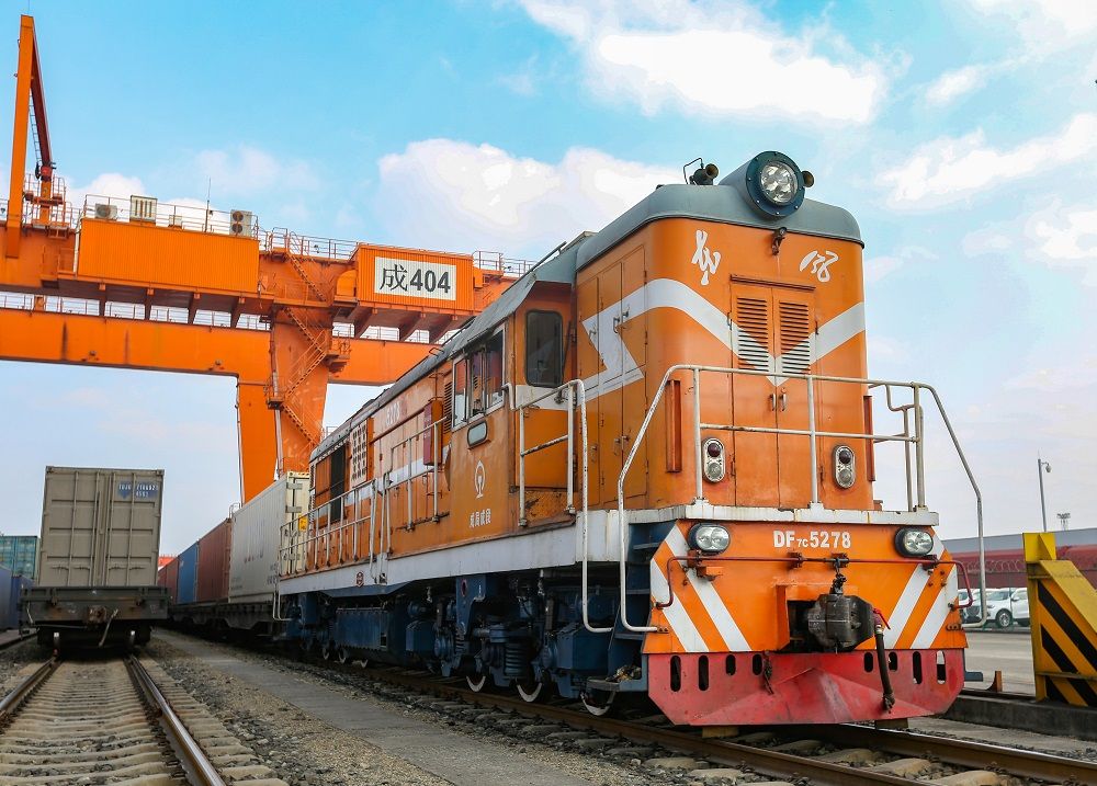 2月19日,满载电子设备的中欧班列从成都国际铁路港发出,将在13天后抵达荷兰蒂尔堡。新冠肺炎疫情期间,成都国际铁路港通过积极开展线上货源组织、营销,保证了中欧班列持续常态化运行。新华社发(白桂斌摄)