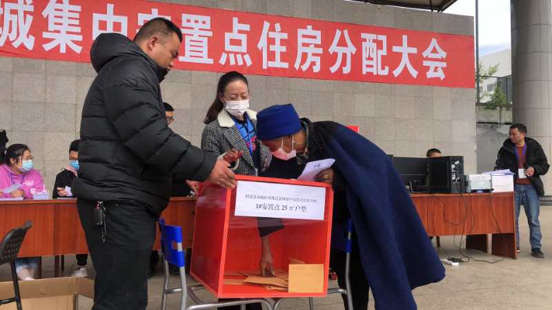 4月26日,凉山州昭觉县易地扶贫搬迁县城安置点面向搬迁群众开始分房,该安置点位于县城附近的城北乡谷都村、城北乡普提村等村,将安置3914户1万8千多人,是四川规模最大的易地扶贫搬迁安置点,整个分房预计耗时3天。