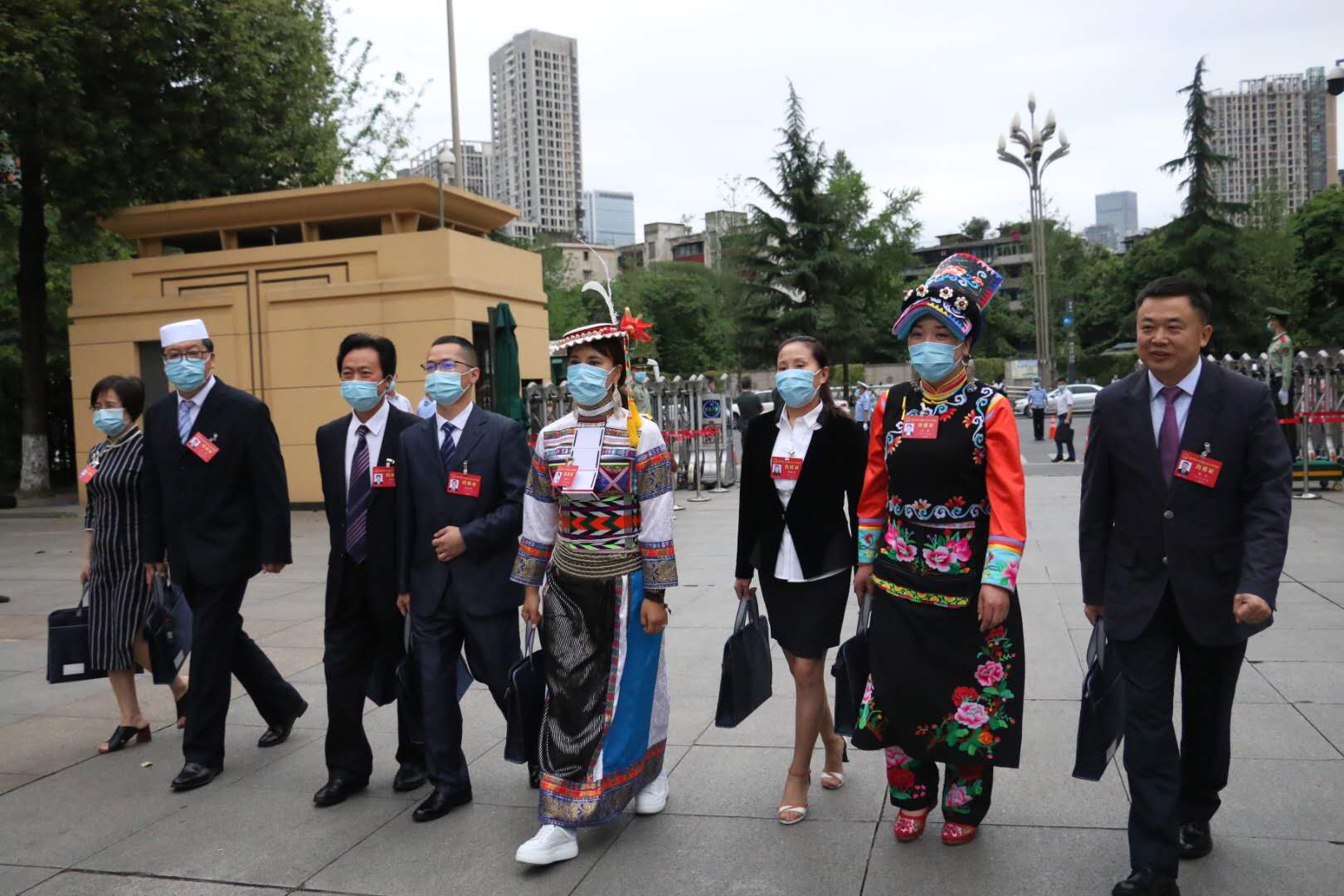 四川发布客户端消息 5月9日上午9时,四川省十三届人大三次会议将在成都锦江大礼堂开幕。来自巴蜀大地的800多名省人大代表汇聚一堂,履行人民赋予的神圣职责。上午8点20开始,锦江大礼堂陆陆续续迎来了一波又一波来自各代表团的人大代表们。因为疫情影响,今年的开幕会显得尤其特别。全体代表们都佩戴着口罩,分批、有序、庄严、肃穆地进入会场。(四川发布客户端记者 张药滟 袁琪)