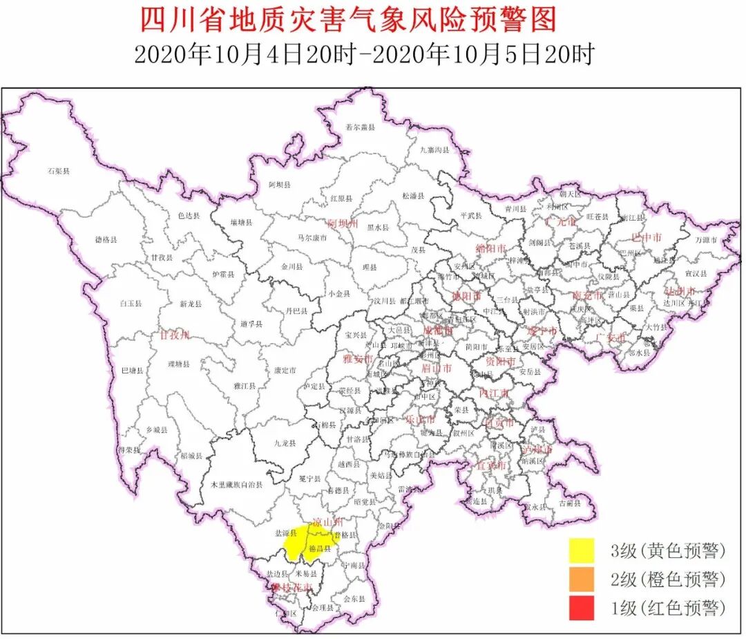 10月4日20时~10月5日20时,凉山州中南部局地发生地质灾害的风险较高。请上述地区加强地质灾害防范。