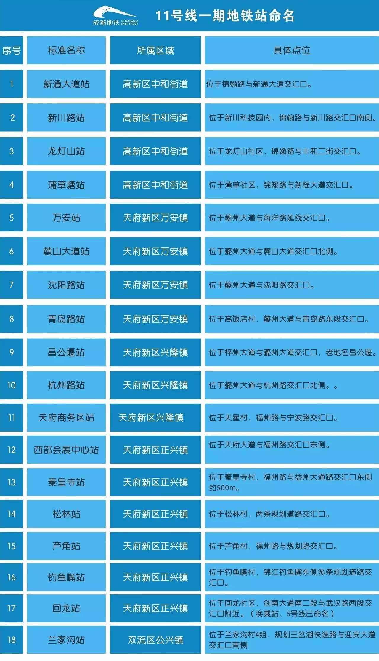 沿线各站分别为:城铁双流站、三里坝站、双流广场站、东升站、迎春桥站、航都大街站、龙桥路站、双凤桥站、武青南路站、武侯立交站、川藏立交站。