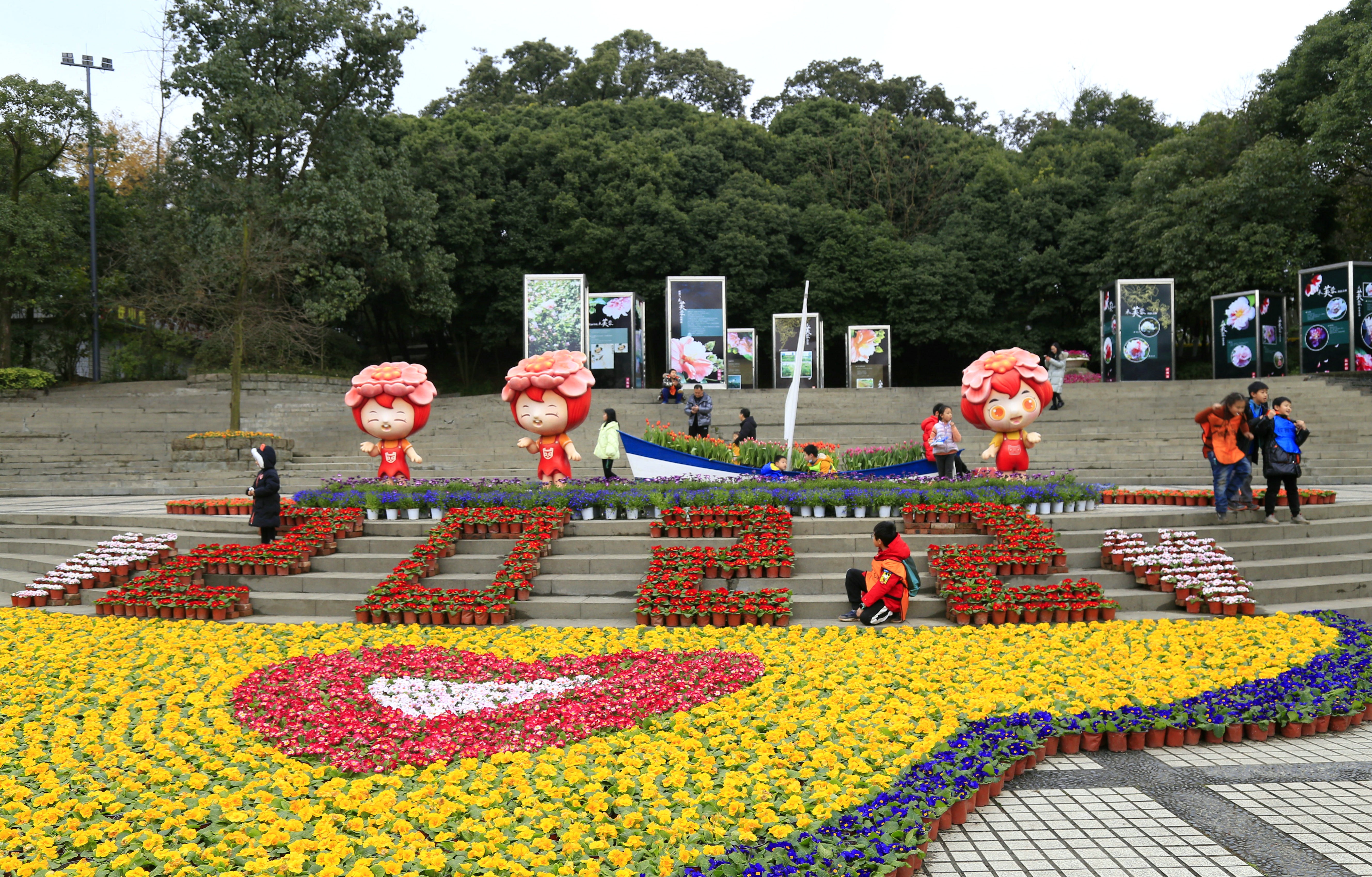 就要过年了,成都市植物园浓厚的春节花卉氛围吸引了不少市民前来逛园。