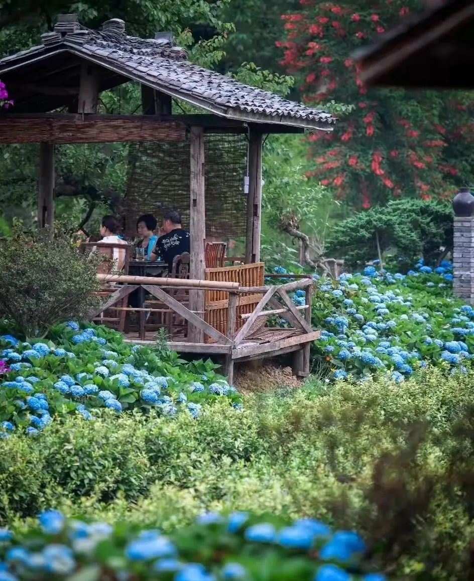 整个园区占地约200亩,分为盆景园、茶园、民俗馆、花田四个游览休闲区,在这儿可体验一把花海中喝茶打牌吃美食的悠闲生活。