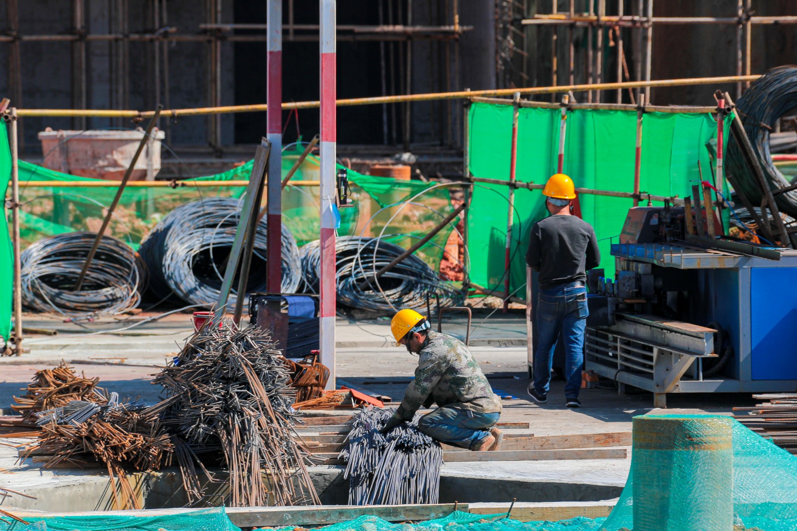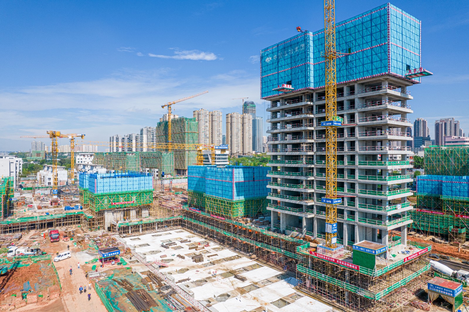 塔吊挥舞着长臂,大型机械和车辆在工地往来穿梭,施工人员有序地进行模板安装、绑扎钢筋等作业……10月4日,在锦江区三圣花乡109亩住宅及配套项目施工现场,记者看到工地上机器轰鸣,工人们干劲十足,现场依然是一片繁忙景象。