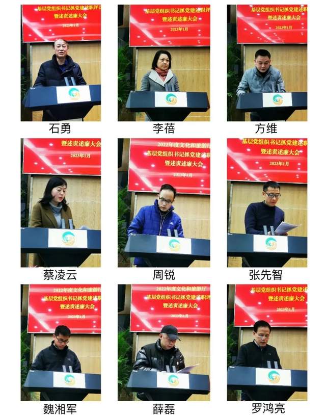 会上,厅二级巡视员王彦勋通报了2022年度文化和旅游厅党建群团获奖情况。厅机关及直属单位9个党组织书记进行了现场述职,其他基层党组织书记作书面述职,并对厅直系统基层党组织书记开展抓党建评议,对厅机关各处(室、局)、直属各单位主要负责同志开展述责述廉评议。
