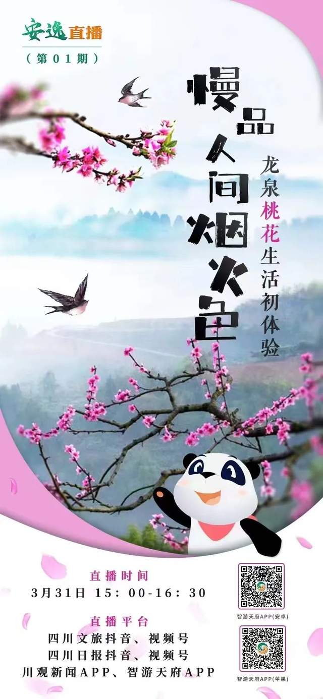 “安逸直播”将通过四川文旅抖音、视频号、四川日报抖音、视频号、智游天府APP、川观新闻APP多平台进行全网直播。