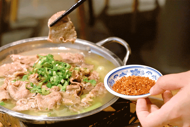 简阳羊肉汤不仅不辣,还很醇香,它的吃法很像火锅的吃法↓