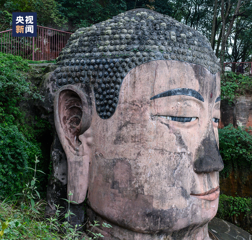 大佛的科学排水系统:大佛头部有古人设计的科学排水系统,上面有三条横向的排水沟,耳朵和脑后也有隐秘而巧妙的排水系统。