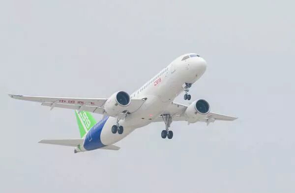 ▲2017年5月5日,中国首款国际主流水准的干线客机C919在上海浦东国际机场首飞。(新华社)