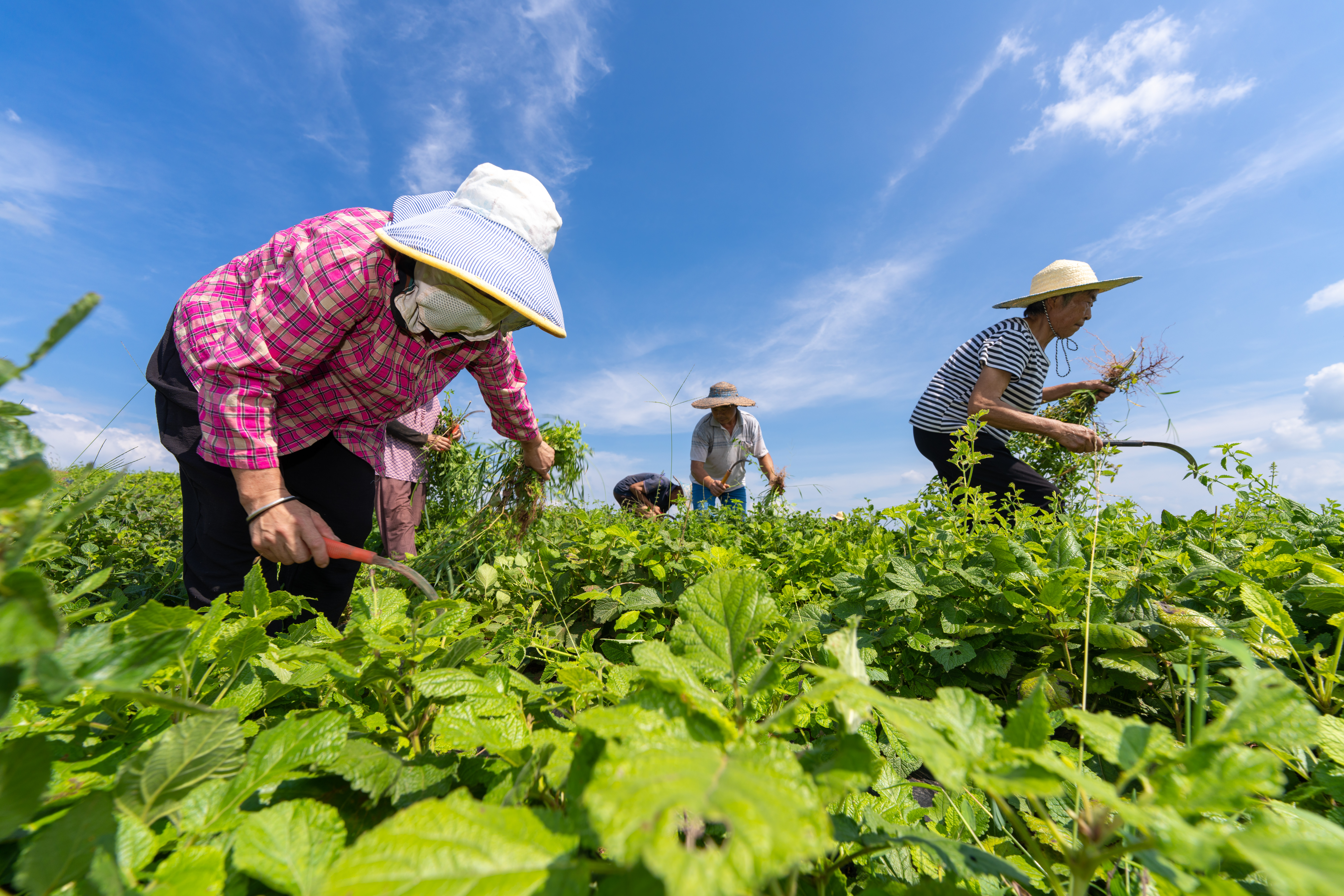 在基地除杂草的村民。