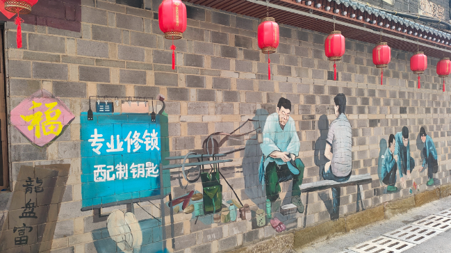 改造雨污和电气管网、翻新路面、改建公厕、美化立面……一系列“组合拳”让水巷子重新焕发了生机,提振了烟火气息,成了市民群众的“打卡点”。特别是各种主题的墙体彩绘,再现了昔日小巷原住居民的生活场景,留住了时代的记忆。