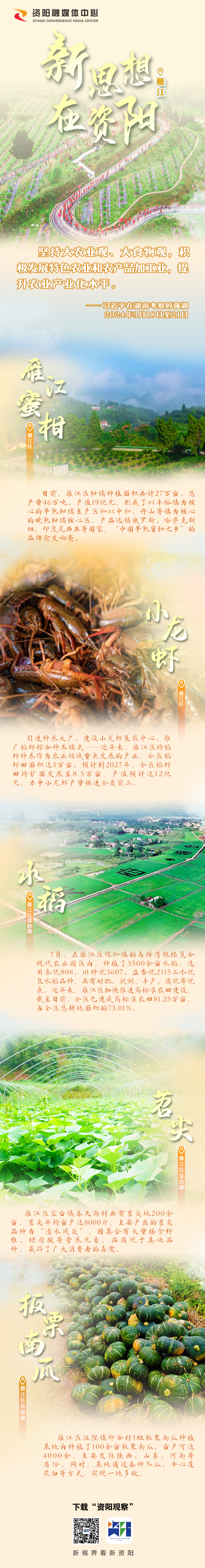 近年来,资阳深入贯彻落实大农业观、大食物观,因地制宜构建多元化食物供给体系,让资阳人的中国饭碗不仅装满了粮,还装满了肉蛋奶、果菜鱼、菌菇笋等美食。