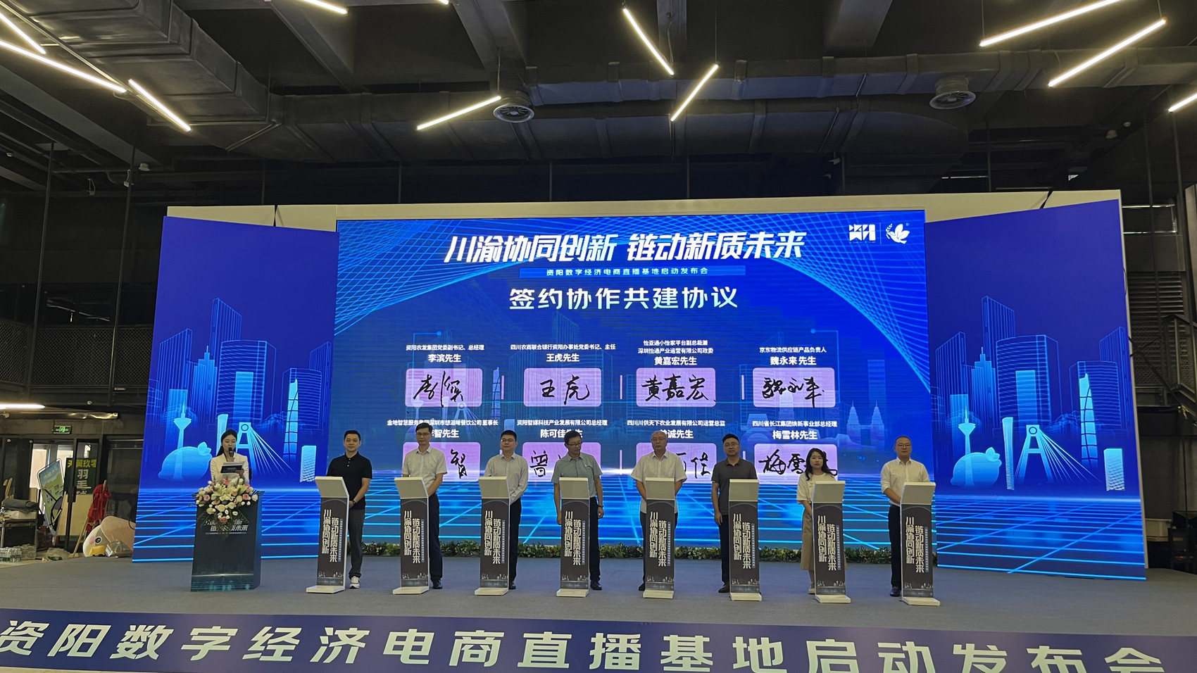 7月26日,由资阳市商务局、资阳市经信局等联合主办的川渝协同创新·链动新质未来──资阳数字经济电商直播基地启动发布会在成都举行。在活动现场,资阳数字经济电商直播基地正式启动,资阳农发集团和供应链、数字经济及仓储物流等相关企业进行了重点项目签约。