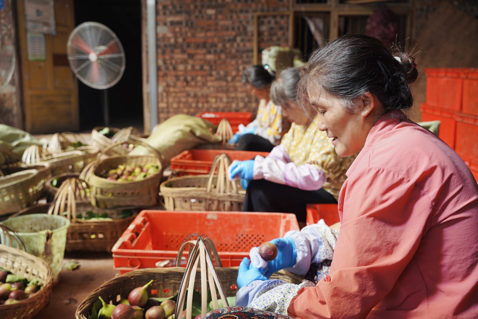 村民分拣无花果。