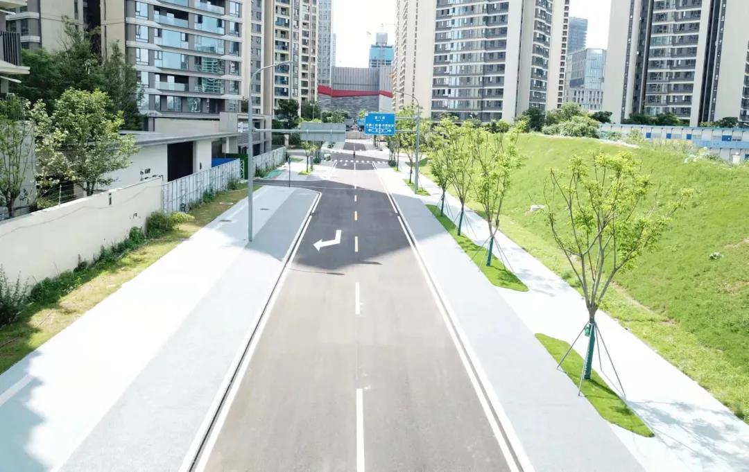 “建设以人为本、绿源渗透的街区空间”,该路段秉承这一设计理念,致力于打造一条绿色生态的城市景观街道。项目自去年9月开工,已于今年7月竣工,预计10月通车。