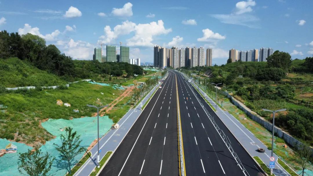 这条“山水环绕、组合布局”的街景协调统一的城市道路项目,自去年2月开工,已于今年7月竣工,预计本月将迎来通车。