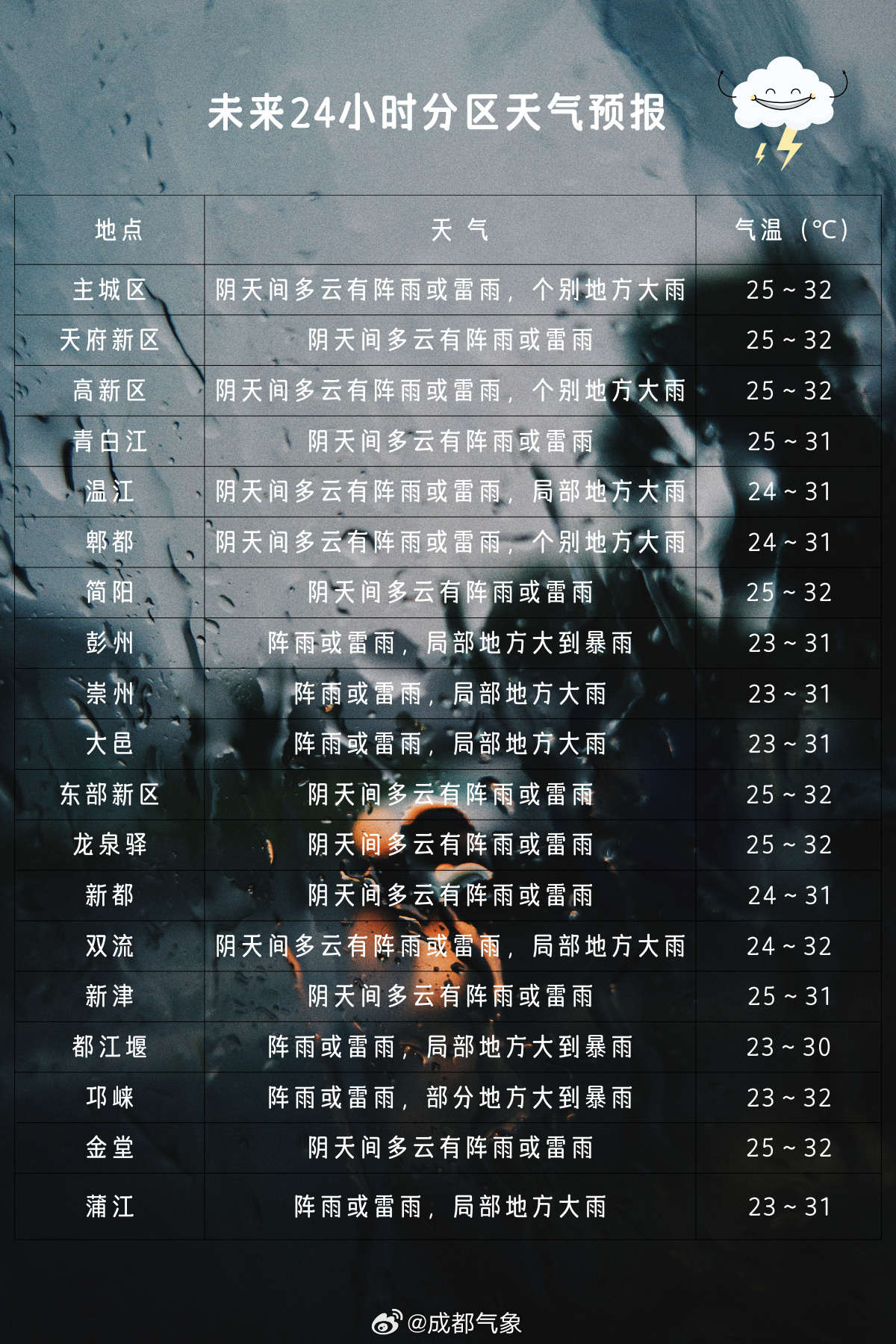 据@成都气象 消息,预计今晚到明晚成都市有一次较明显的阵雨或雷雨天气,易出现短时强降雨和阵性大风等强对流天气,明天白天最高气温降至32℃左右,请大家注意防范短时强降雨和雷暴大风带来的不利影响。之后两天转为多云天气,气温略有回升。
