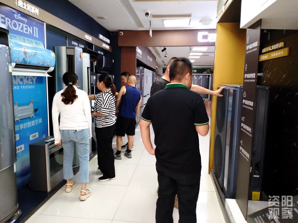 “近段时间时间天气炎热,前来购买风扇、冰箱、空调等制冷降温类电器的市民比较多,相比往年,8月的销售额上涨了20%左右。”乐至县飞龙家电负责人谢俊表示。