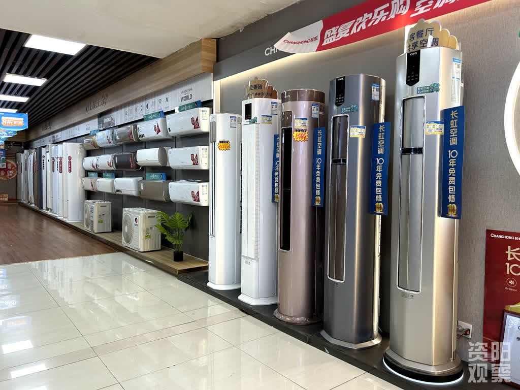当天,记者在位于乐至城区的飞龙家电家电看到,空调、电扇、冰箱、冰柜等家电被整齐摆放在商场最显眼的位置,吸引广大市民前来购买。