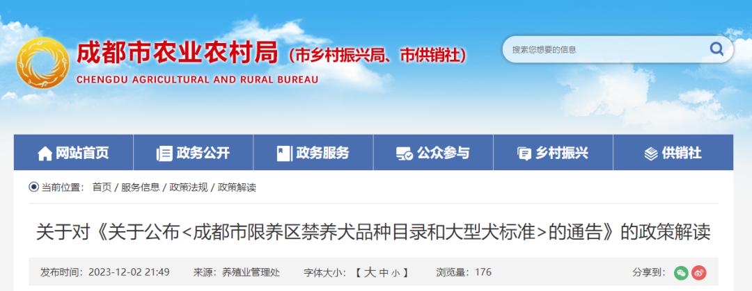 法官表示,2023年12月,成都市农业农村局、成都市公安局发布了《关于<成都市限养区禁养犬品种目录和大型犬标准>的通告》及该《通告》相关政策解读文件,就禁养犬品种目录、大型犬标准、举报方式、处罚措施等作了细致规定。