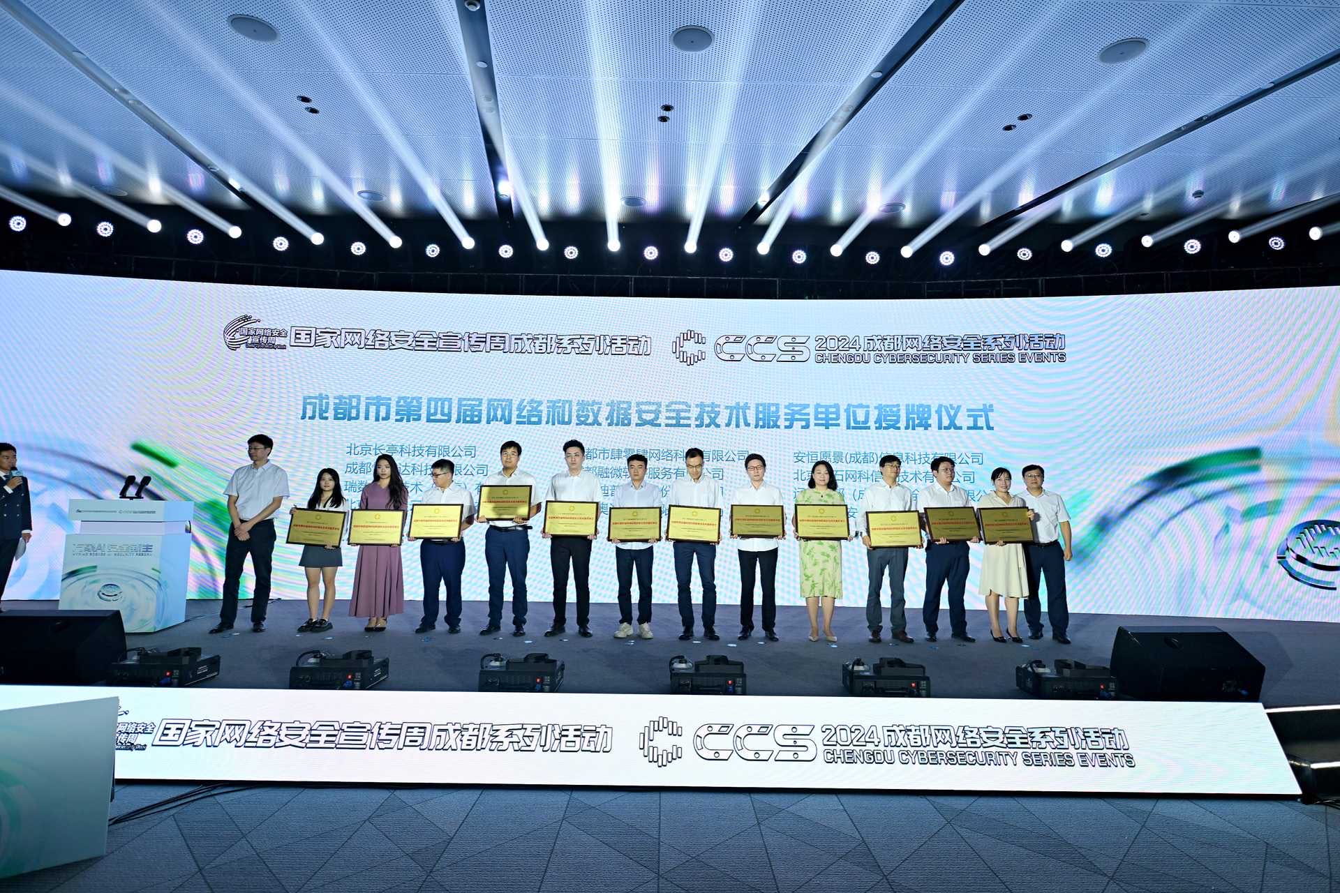 开幕式现场,活动为同期举办的第四届极客少年挑战赛获奖选手颁奖,还为入选成都市第四届网络和数据安全技术服务单位的25家企业进行了授牌,驱动网络安全人才、产业高质量发展,共谋网络安全新篇章。