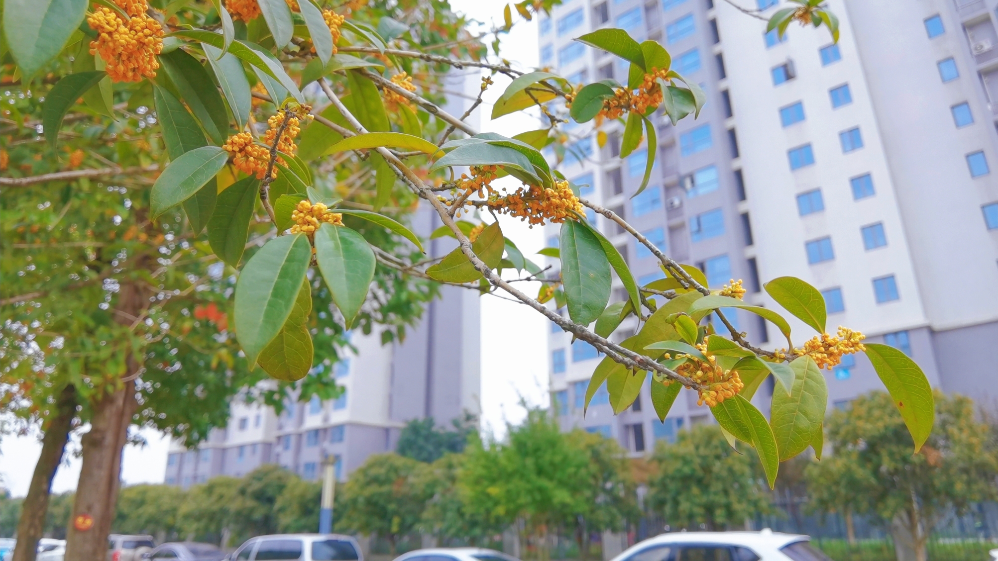 在孵化园对面的高投集团停车场,一排金黄色的桂花树虽然还未完全盛开,但那若有若无的香气已经开始在空气中弥漫,让人对桂花的全面盛开充满了期待。