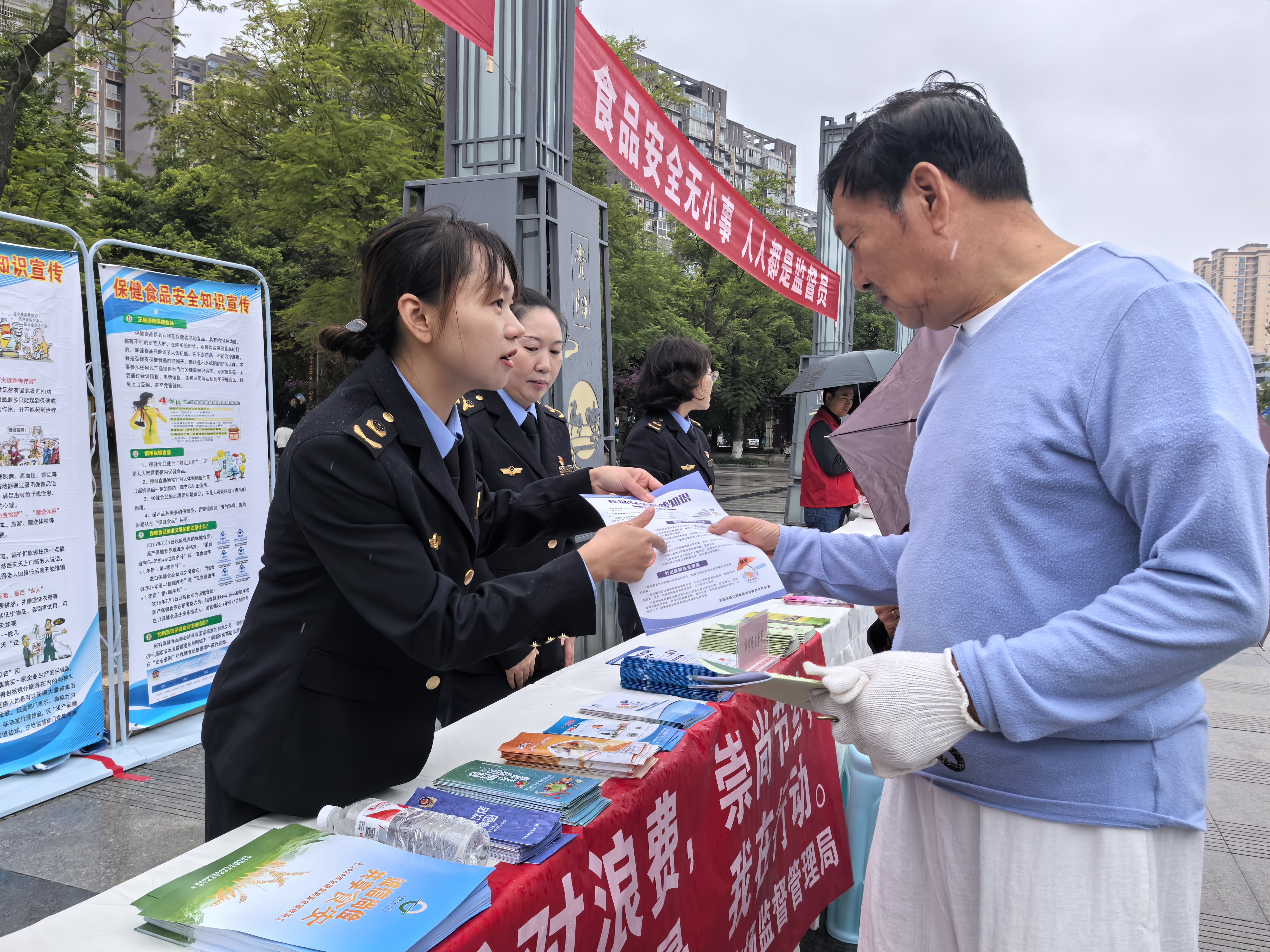 活动现场,资阳市级各有关部门在食品安全宣传区域通过设立咨询台、悬挂横幅、放置展板、发放宣传资料、现场答疑等形式,向群众宣传普及食品安全法律法规,科普食品安全知识等内容。