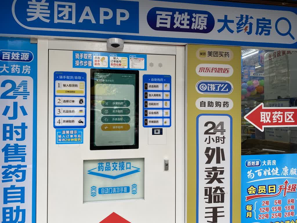 “24小时自助售药机是药店探索的‘线上+线下’零售药品的新模式,传统药店通常会在晚上9时左右停止营业,设立24小时自助售药机可以方便市民夜间购买急用药。”百姓源药店店长杨彩琼向记者介绍,自助售药机操作简单,可以使用手机美团App下单线上购买,也可以到店自主购药,市民按照售药机提示操作即可。