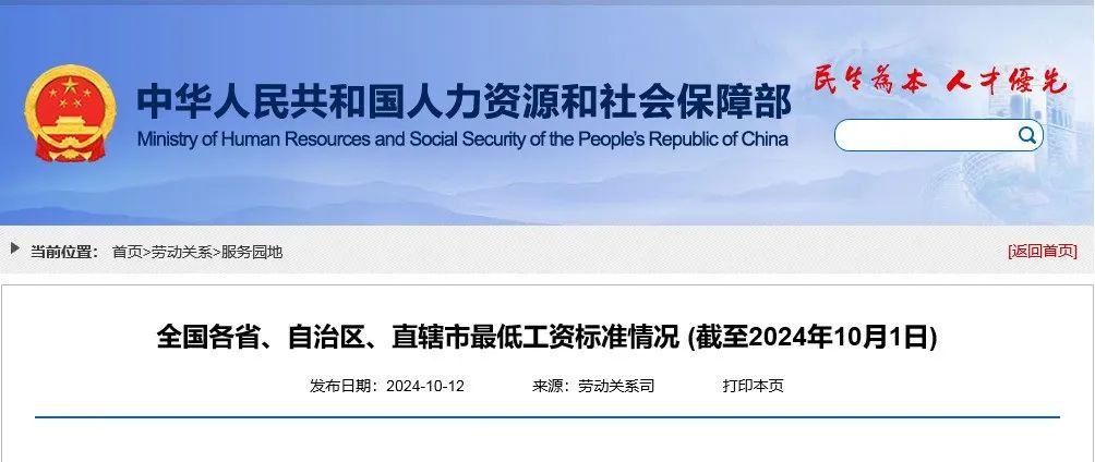 近日,人力资源和社会保障部发布了全国各省、自治区、直辖市最低工资标准情况。