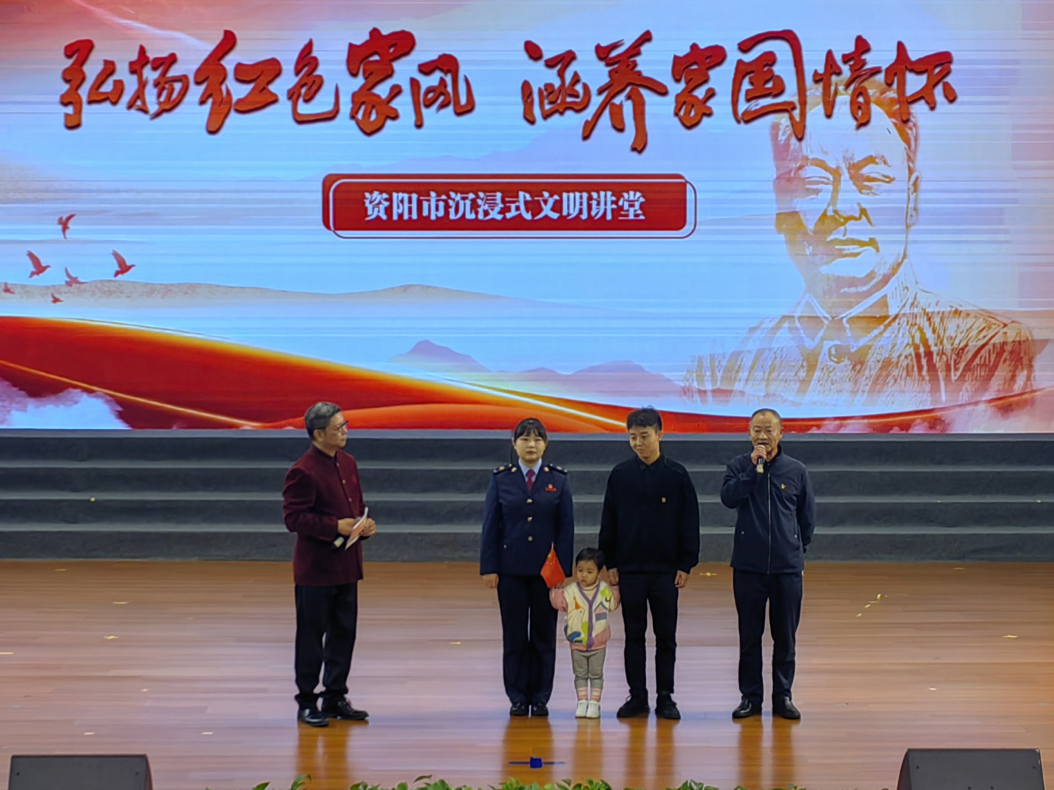 “好多观众都感动得流泪了……”10月23日上午11时许,走出资阳口腔职业学院学生活动中心的观众议论着刚刚结束的让人难忘的“一堂课”──以“弘扬红色家风 涵养家国情怀”为主题的沉浸式文明讲堂,“讲得太好了,让每个人都沉浸其中,深受教育和启发”。当天,市委常委、秘书长、宣传部部长周月霞与部分市级机关领导干部和党员代表、师生代表以及10.9万网友一同观看了这场别开生面的文明讲堂。