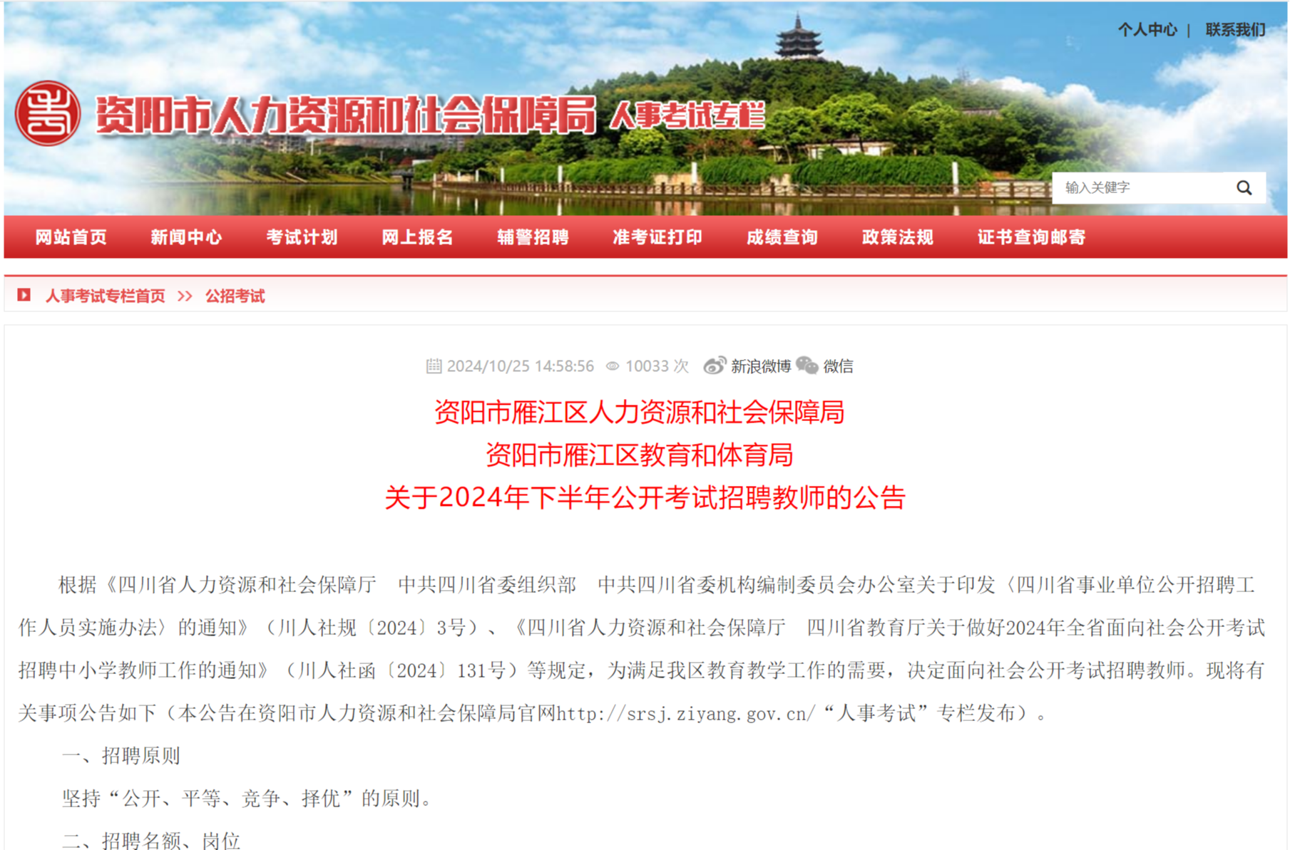 本公告由资阳市雁江区人力资源和社会保障局、资阳市雁江区教育和体育局负责解释。