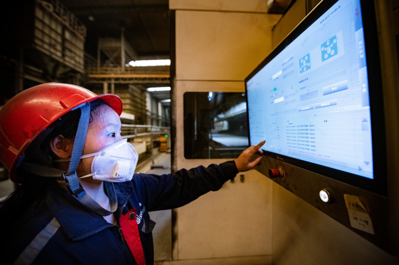 工人操作铸造砂型3D打印设备,准备打印铸件模型。全媒体记者 张建 摄