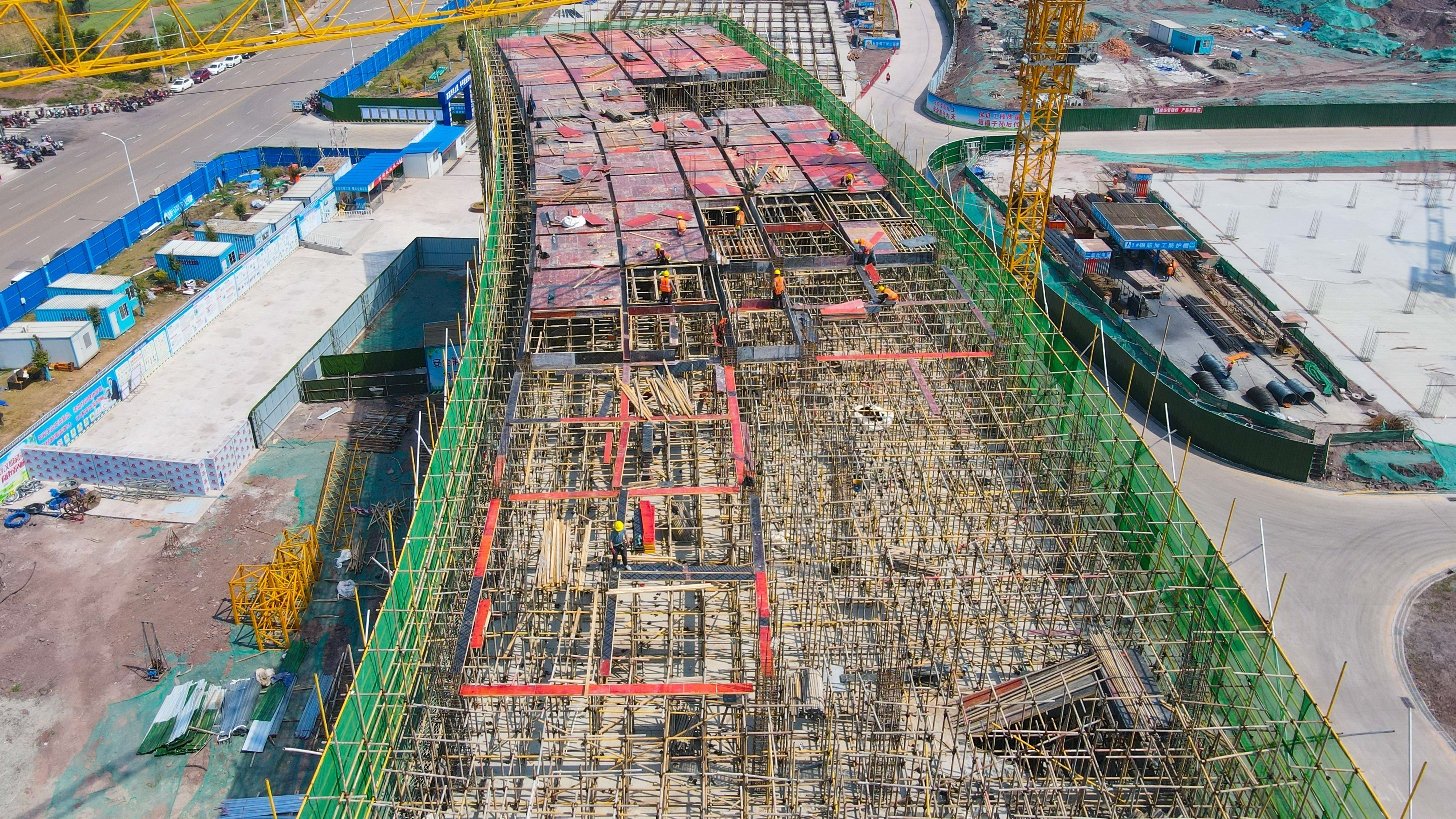 近日,在成渝产业转移示范园的建设工地上,机器轰鸣、塔吊林立,工人们正在紧张地进行主体结构施工。据项目负责人刘冰介绍,项目一标段于2023年9月开工建设,目前正在进行主体结构施工,主体结构已完成96%,二次结构完成58%。并计划在10月完成主体结构全部封顶,为整体进度推进创造条件。计划11月推动内外墙装饰装修工作,同步启动总平前期工作。