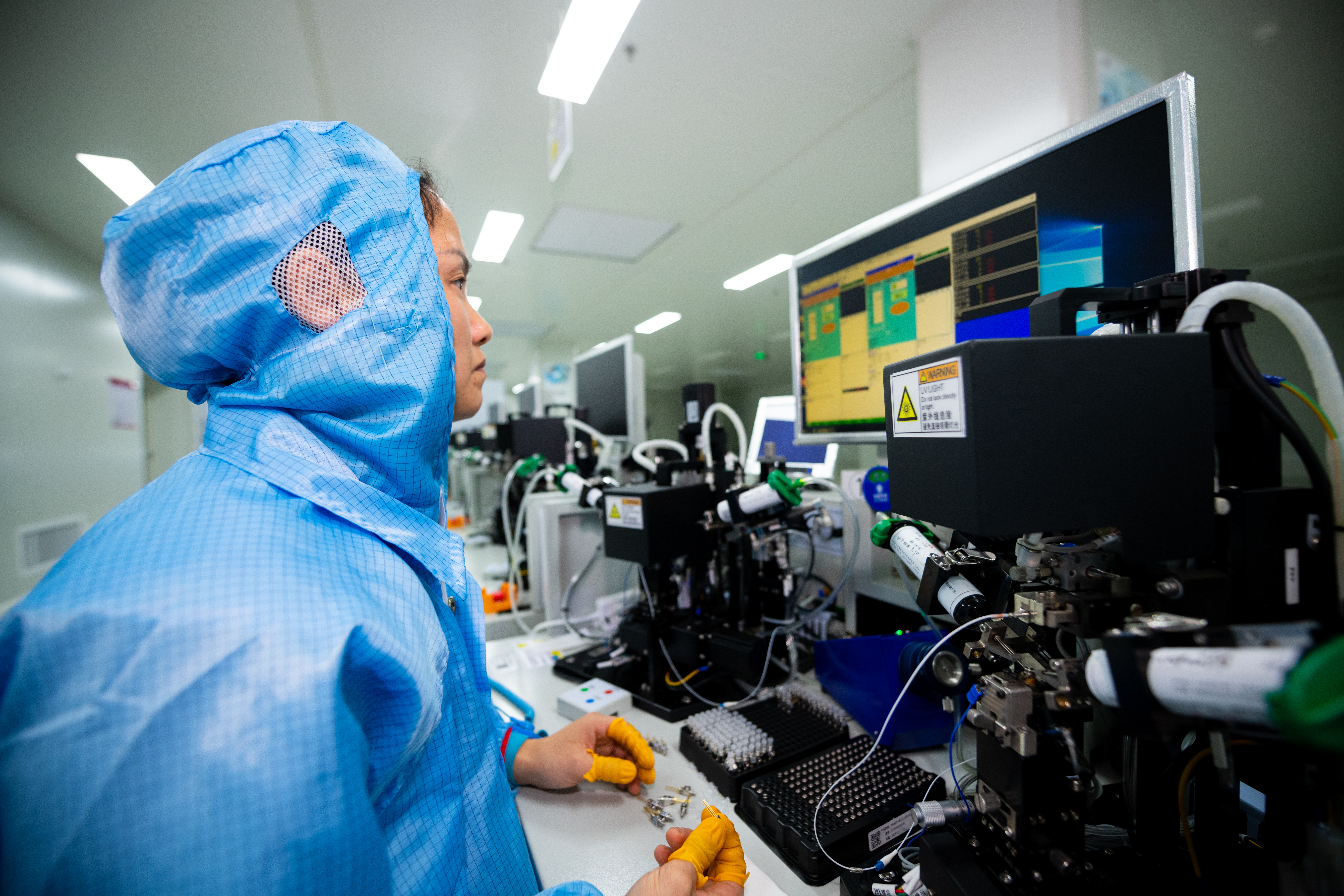 四川省光为通信有限公司工人正在进行RX耦合焊接。