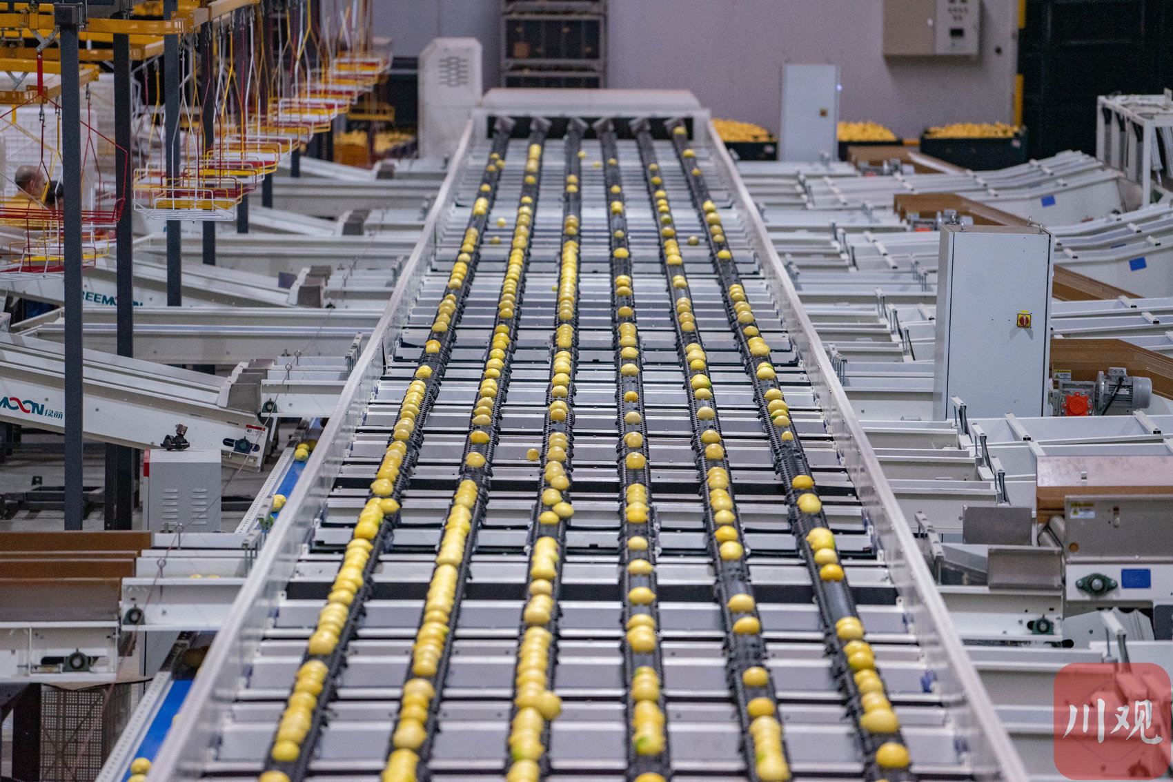 位于资阳市安岳县的四川省维记果品有限公司分拣车间,成千上万颗柠檬正经过智能化分拣线检测。