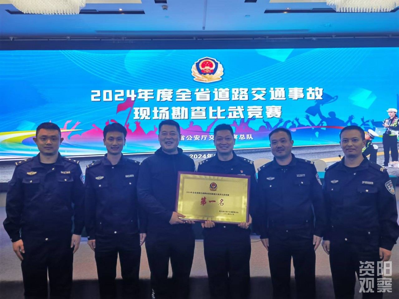 近日,记者从资阳市公安局交警支队获悉,在四川省公安厅交警总队举办的《2024年度全省道路交通事故现场勘查大练兵比武竞赛暨事故案卷评查》比武中,资阳市公安局交警支队以事故预防处理大队为班底,选派的4名精兵强将在21支参赛队伍中脱颖而出,勇夺全省第一名,这是资阳代表队参加此项比赛获得的历史最好成绩。