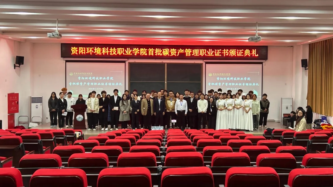 11月19日,资阳环境科技职业学院首批碳资产管理职业证书颁证典礼拉开帷幕。该校生态环境学院的33名学生获得“碳资产管理”职业证书,是四川首批获得“双碳”相关人社证书的高校学子。