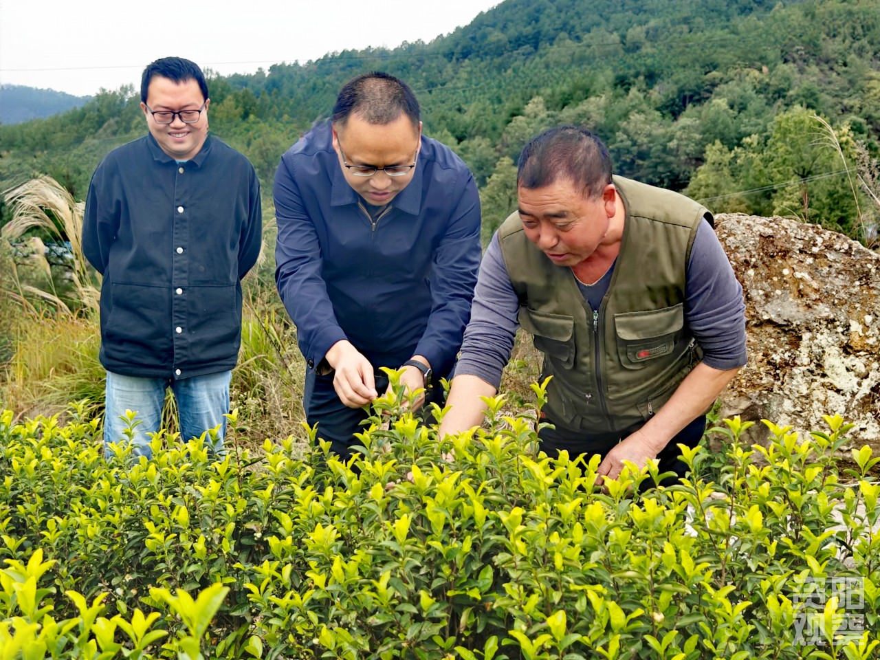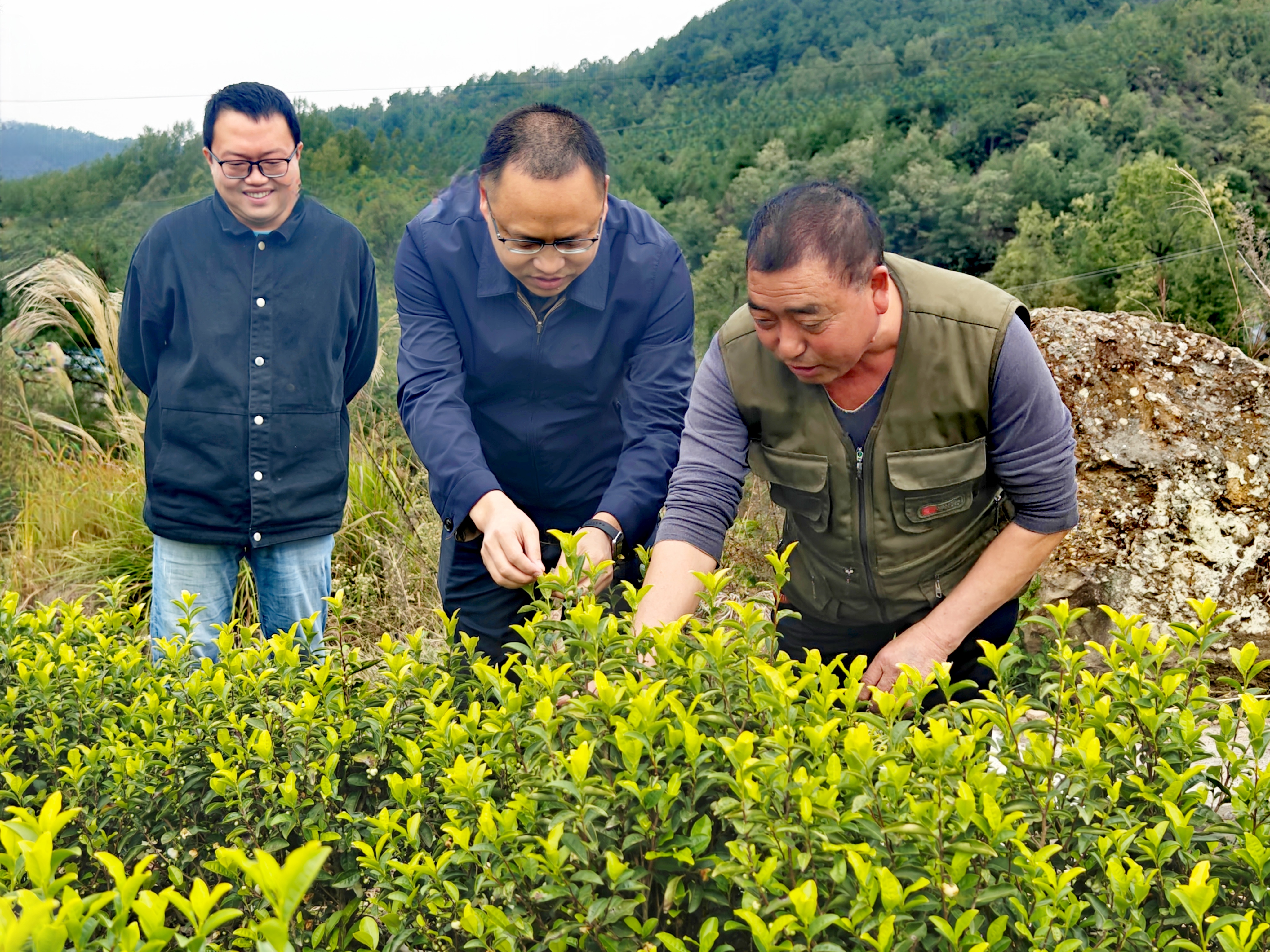 资阳帮扶工作队队员到田间地头查看黄茶长势情况。