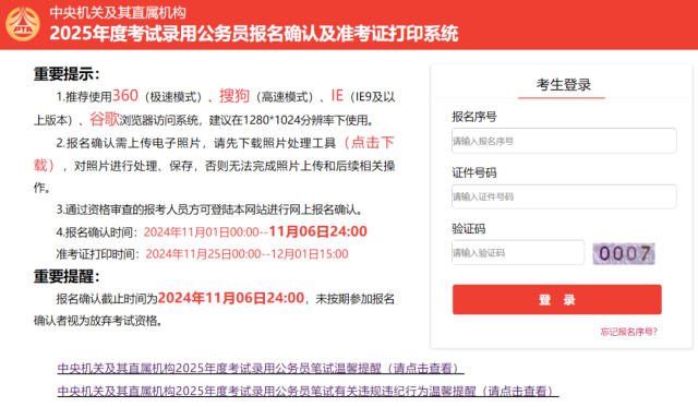①报考人员应在2024年11月25日0:00至12月1日15:00期间登录专题网站